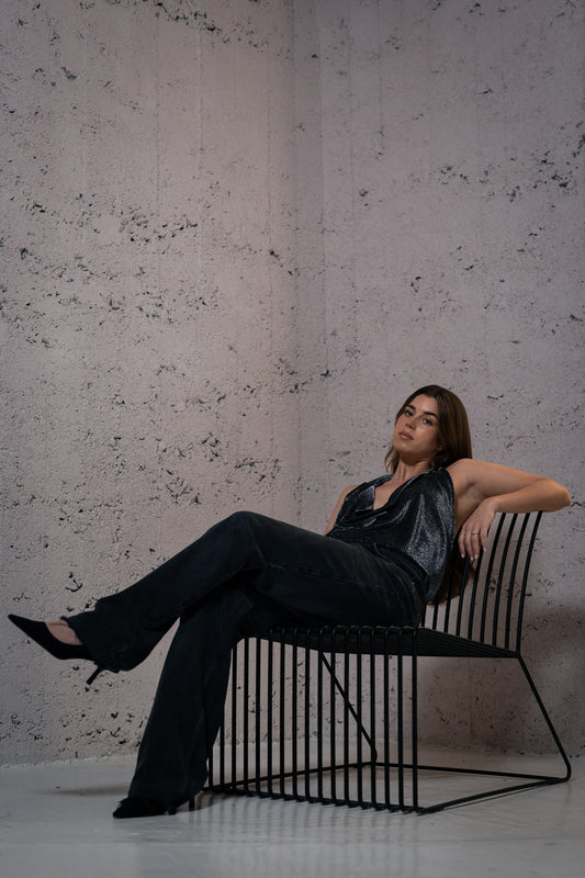 DRAPED SPARKLING TOP / SILVER