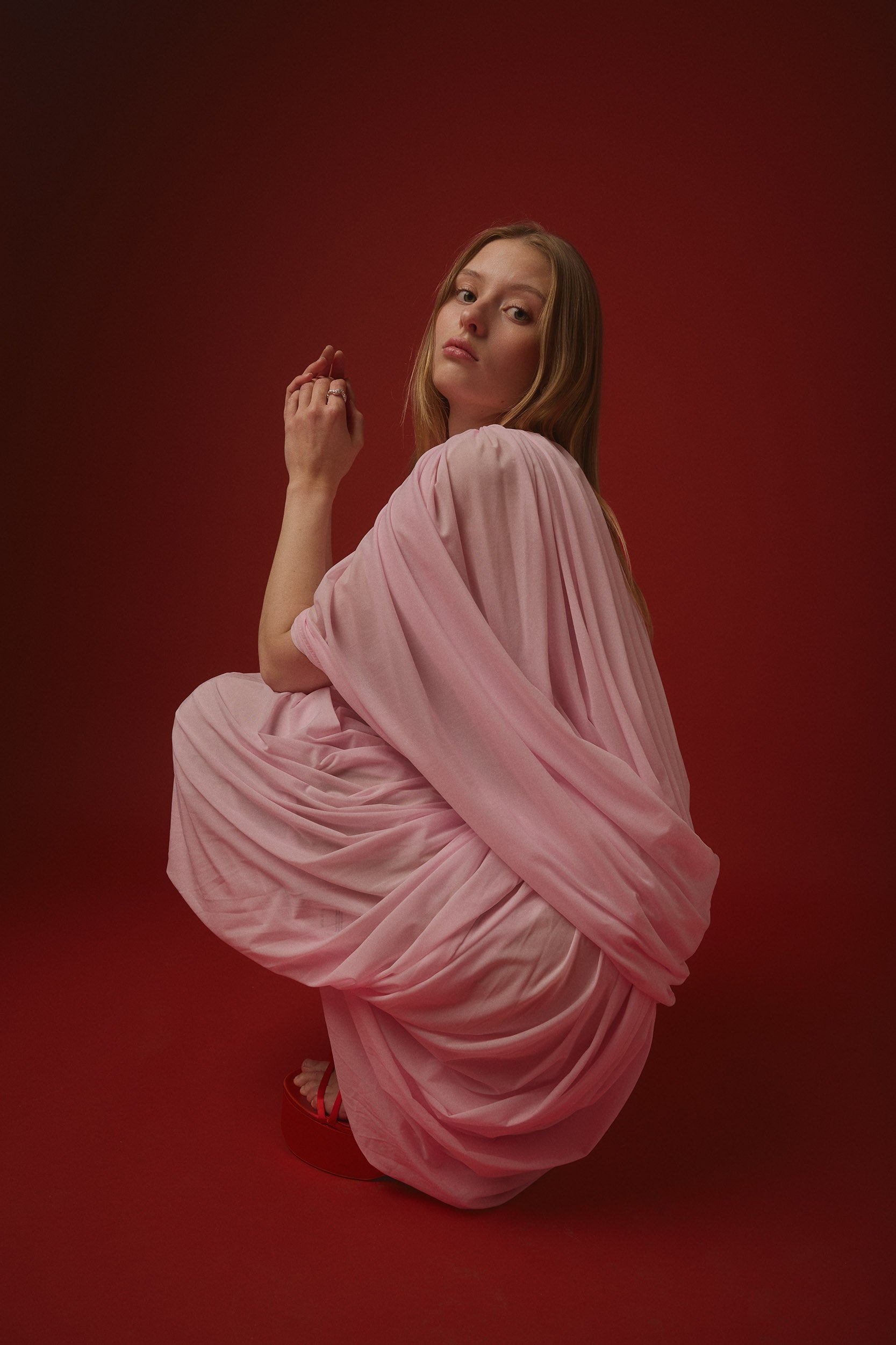 Karla Topp är en ljuvlig, lätt transparent topp i stretchigt, mjukt material. Capen sitter fast i toppen och har ett underbart fall bak, en detalj som gör toppen unik. Capen kan knäppas med en hyska fram, vilket gör tyget mindre transparent vid bysten. Karla Topp passar perfekt till Ava Twisted Skirt.